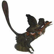 Microraptor, an extinct small flying dinosaur from the Cretaceous Period