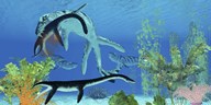 A Dakosaurus attacks a small Plesiosaurus