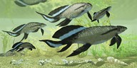 A group of Scaumenacia lobe-finned fish from the Devonian period