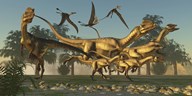 A herd of Apatosaurus dinosaurs