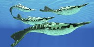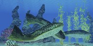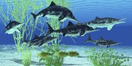 Rhizodus hibberti, a group of Carboniferous lobe-finned fish