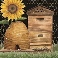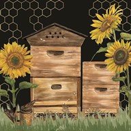 Honey Bees & Flowers Please landscape on black IV-Sunbeams