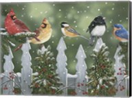 Winter Birds on a Snowy Fence