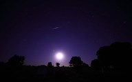 A bolide from the Geminids meteor shower above a setting moon in Mercedes, Argentina