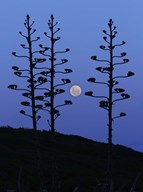 The moon rising between agave trees, Miramar, Argentina