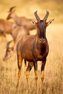 Female topi standing on grassy plain, Masai Mara Game Reserve, Kenya