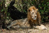Kenya, Masai Mara Game Reserve, lion in bushes