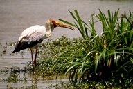Kenya. Masai Mara, Yellowbilled stork bird