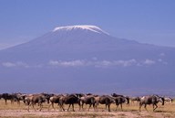 Kenya: Amboseli NP, wildebeest wildlife, Mt Kilimanjaro