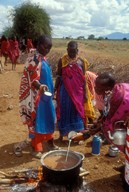 Maasai Women Cooking for Wedding Feast, Amboseli, Kenya
