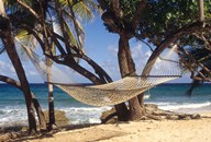 Hammock tied between trees, North Shore beach, St Croix, US Virgin Islands