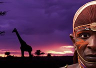 Maasai Warrior with Sunset on the Serengeti, Kenya