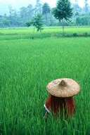 Scenic of Rice Fields and Farmer on Yangtze River, China