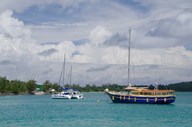 Indian Ocean, Seychelles, Praslin, Sailboats