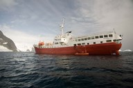 Expedition ship and zodiac, Pleneau Island, Antarctica