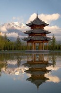 Pagoda in pond, Valley of Jade Dragon Snow Mountain