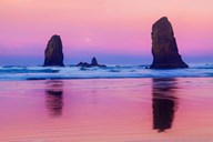 Oregon, Bandon Sunrise On Beach Sea Stacks