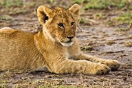 Lion Cub Laying in the Bush, Maasai Mara, Kenya