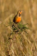 Rosy-breasted Longclaw bird, Maasai Mara Kenya
