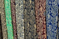 Egypt, Aswan. Clothing shops in the market.