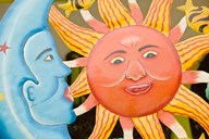 Sun and moon Souvenirs at Al Vern's Craft Market, Turks and Caicos, Caribbean