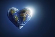 Heart-shaped planet Earth on a dark blue background