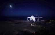 A small church at night with starry sky, Crete, Greece