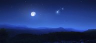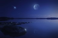 Starry sky, moon and falling meteorite over a lake, Finland