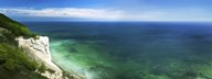 Aerial view of chalk mountain and sea, Mons Klint cliffs, Denmark