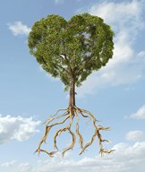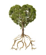 Tree with Foliage in the Shape of a Heart with Roots as Text Love