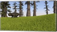 Triceratops Walking Across a Grassy Field