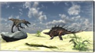 Utahraptor and a Kentrosaurus