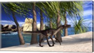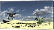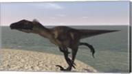 Utahraptor Walking Along the Shore