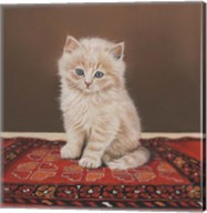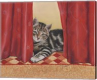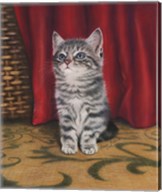 Grey Kitten And Red Curtain