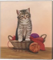 Kitten And Wool Basket