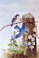 Bluebirds with Daisies