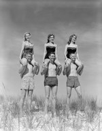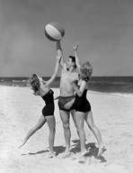 1950s Teens Jumping For Beach Ball