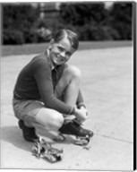 1930s Smiling Boy Fastening On Metal Roller Skates