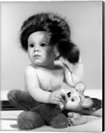 1960s Baby Wearing Coonskin Hat