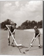1930s 1940s 2 Boys With Sticks And Puck