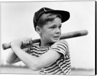 1930s Boy At Bat Wearing A Horizontal Striped Tee Shirt