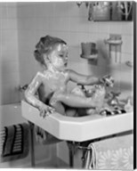 1940s Girl Sitting In Sink Lathered With Soap