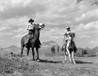 Pair Of Cowboys On Horseback At Glacier Fifty Mountain Camp