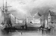 Skyline Boston Massachusetts From Waterfront Showing Fanueil Hall Engraving By T. A. Prior From Bartlett