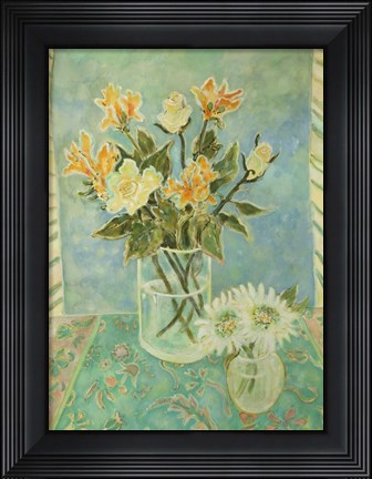 Freeshias And Roses In St. Tropez by Lorraine Platt